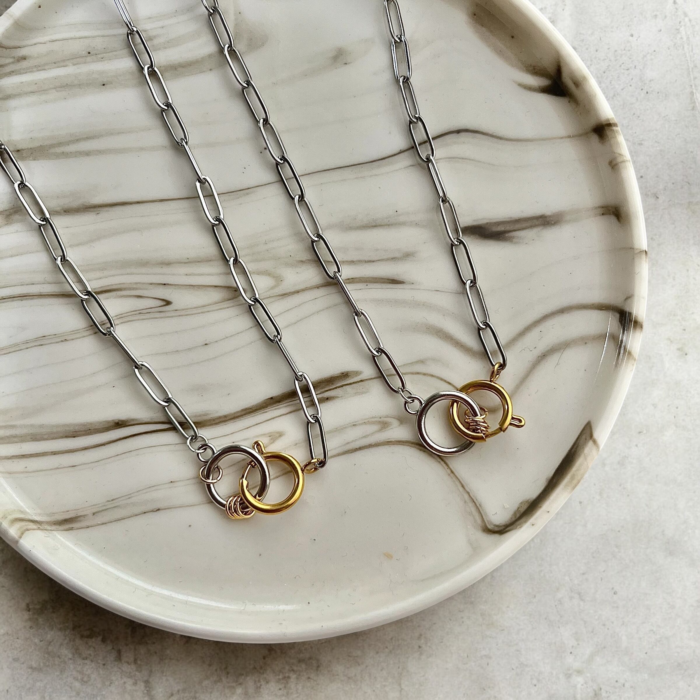 バイカラーのチェーンネックレスです
